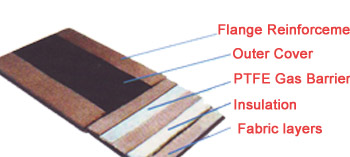 Temp. capabilities range from -50° C – +1260 °C and pressure range from -50kPa to +50kPa.The sectional view of a standard Expansion Joint engineered approach to Multi-Layer Fabrics.